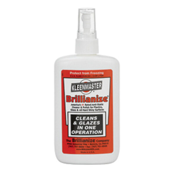 Brillianize, 8 Oz. Spray, Versatile anti static cleaner and polish is effective on glass, plastic, chrome, and other shiny, non absorbentsurfaces. Cleans and shines in one application, PROtecting surfaces against fingerprints and other marks. Nontoxic, nonflammable, and virtually odorless for safe, pleasant use.